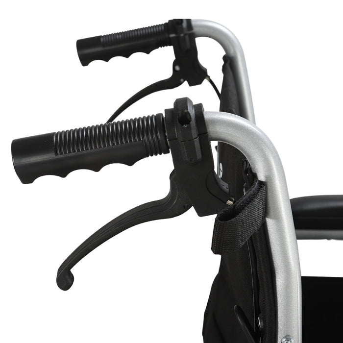 Handle-operated brakes offer an additional layer of safety and control, and the handles are equipped with soft, comfortable grips for the attendant's convenience.