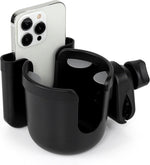 This phone and cup holder is a convenient attachment that is perfect for carrying bottles, cans and cups as well as most mobile phone models - suitable for phones under 6.8" in width.